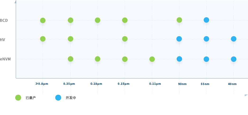 顺发配资HV CMOS技术基于先进的CMOS工艺平台,开发出多种电压的HV CMOS器件,以优越的性能和较低的成本满足各类面板驱动IC产品需求。当前0.15μm 1.8/3.3/18V HV CMOS工艺开发完成,已开始试产;90nm 1.32/3.3/5/6/32V HV CMOS系列工艺开发中。将持续往更丰富电压,更先进节点开展。