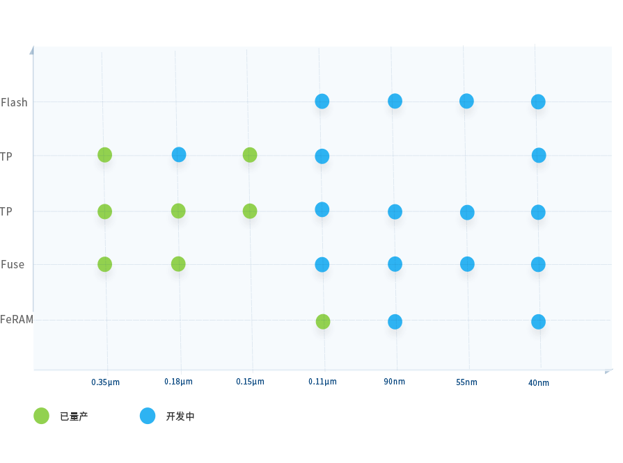 顺发配资给予多种嵌入式非易失性存储器(eNVM)技术,技术节点覆盖0.35μm到0.15μm量产工艺以及0.11μm到40nm在研工艺,为各工艺平台给予了可靠和高效的存储方案,现在0.11 μm e-flash工艺开发进行中,预计2024年完成,90nm e-flash预计2025年完成, 0.11μm FRAM平台先导客户产品导入成功,2D产品已成功量产,3D产品预计年底量产,产品涉及串行和并行的独立和嵌入式类型